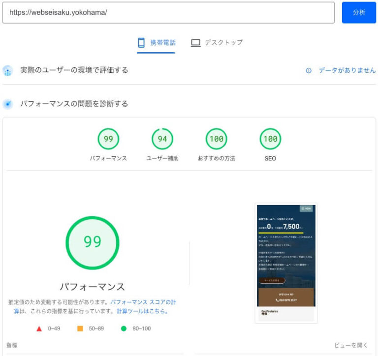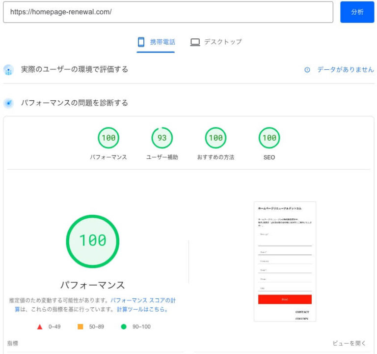 指標としてキャプチャされた点数はすべてスマホの点数です。